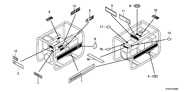 Ersatzteile für Honda Stromerzeuger ECT7000 GVWT (GVWT) Baugruppe AUFKLEBER (1)