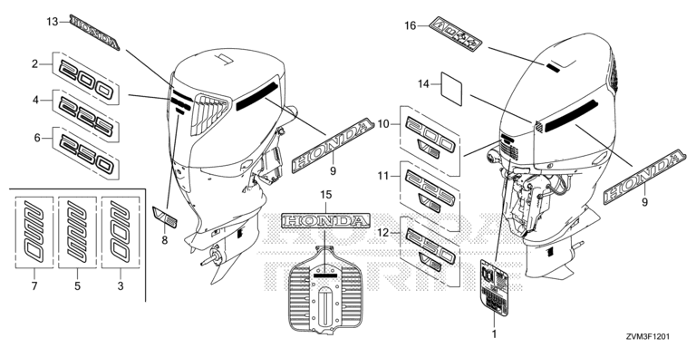 Ersatzteile für Honda Außenbordmotoren BF250DK1 UCDZ (UCDZ) Baugruppe AUFKLEBER (2)