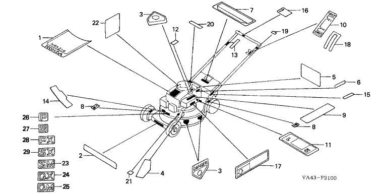 Ersatzteile für Honda Rasenmäher HRA214 PXG/A Baugruppe AUFKLEBER