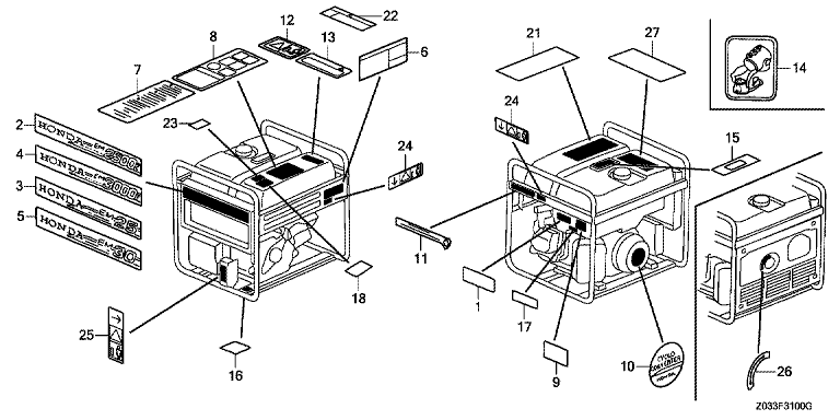 Ersatzteile für Honda Stromerzeuger EM30 SK1 (SK1) Baugruppe AUFKLEBER