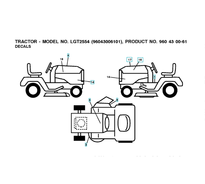 Ersatzteile für Husqvarna Gartentraktor LGT2554 ( 96043006101, 2009-09 ) AUFKLEBER: