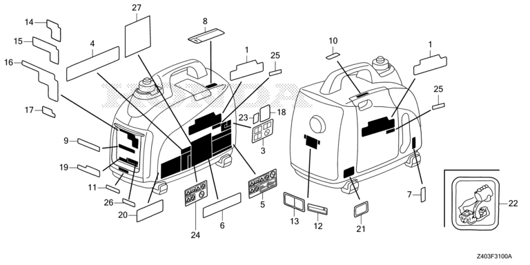Ersatzteile für Honda Stromerzeuger EU10IT1 SK1 (SK1) Baugruppe AUFKLEBER