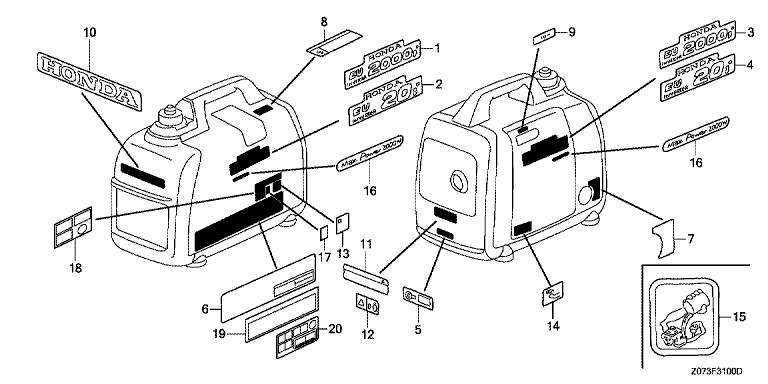 Ersatzteile für Honda Stromerzeuger EU2000I C (C/C) Baugruppe AUFKLEBER
