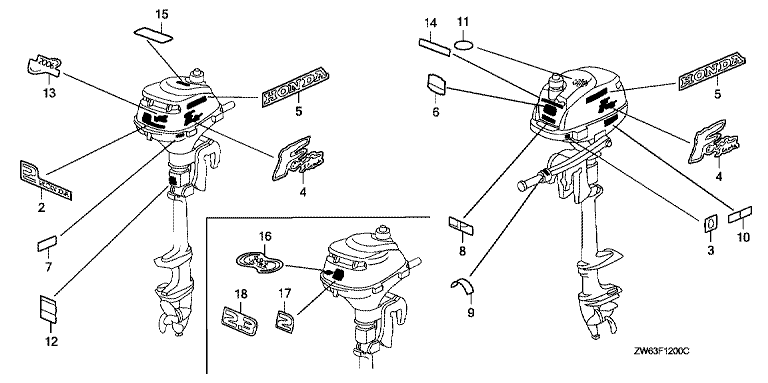 Ersatzteile für Honda Außenbordmotoren BF2D4 SHU (SHU) Baugruppe AUFKLEBER