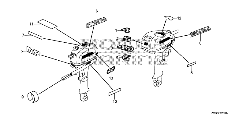 Ersatzteile für Honda Außenbordmotoren BF5DH LHND (LHND) Baugruppe AUFKLEBER