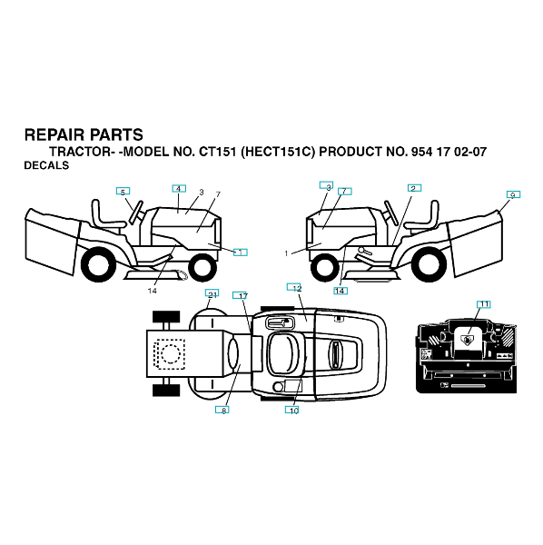 Folgende Ersatzteile für Husqvarna Gartentraktoren CT151 ( ECT151C, 954170207 2004-06 ) AUFKLEBER können Sie hier bestellen: