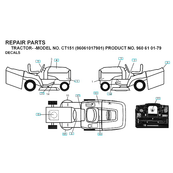 Ersatzteile für Husqvarna Gartentraktoren CT151 ( 96061018002, 2007-05 ) AUFKLEBER:
