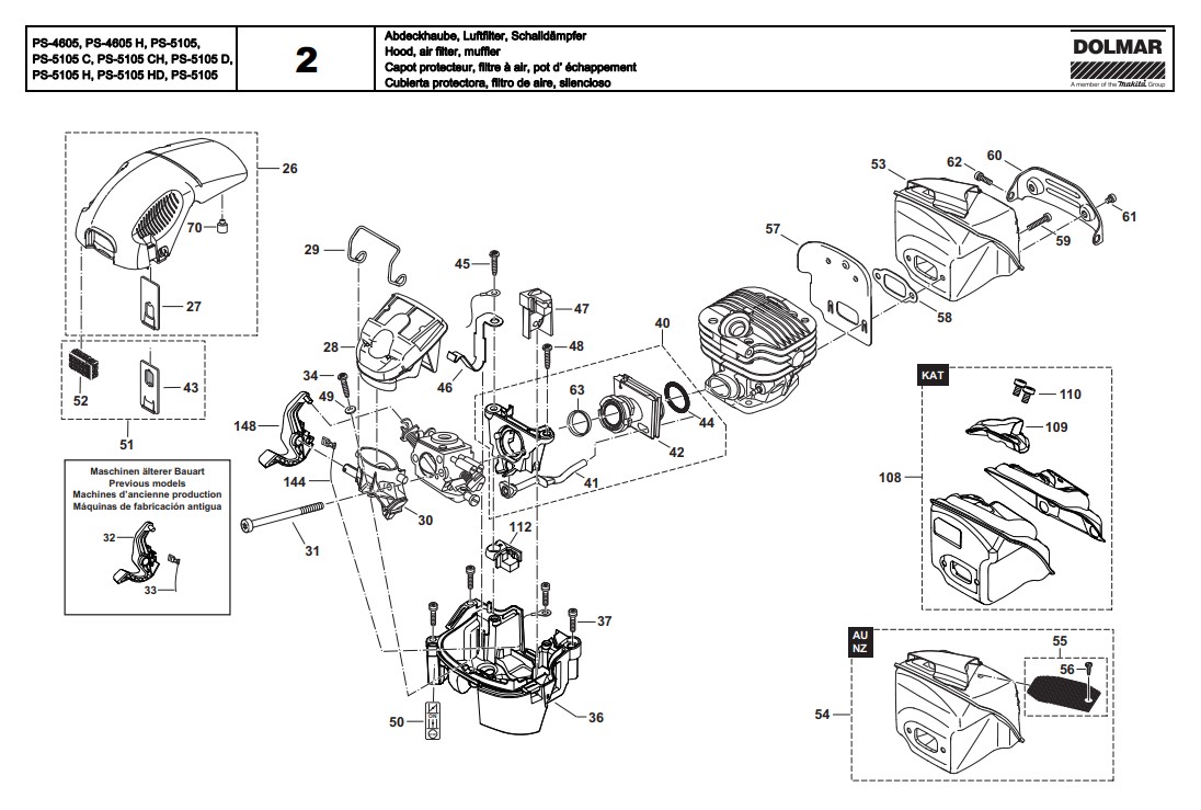 Folgende Ersatzteile für Dolmar Kettensäge PS-4605 H können Sie hier bestellen: