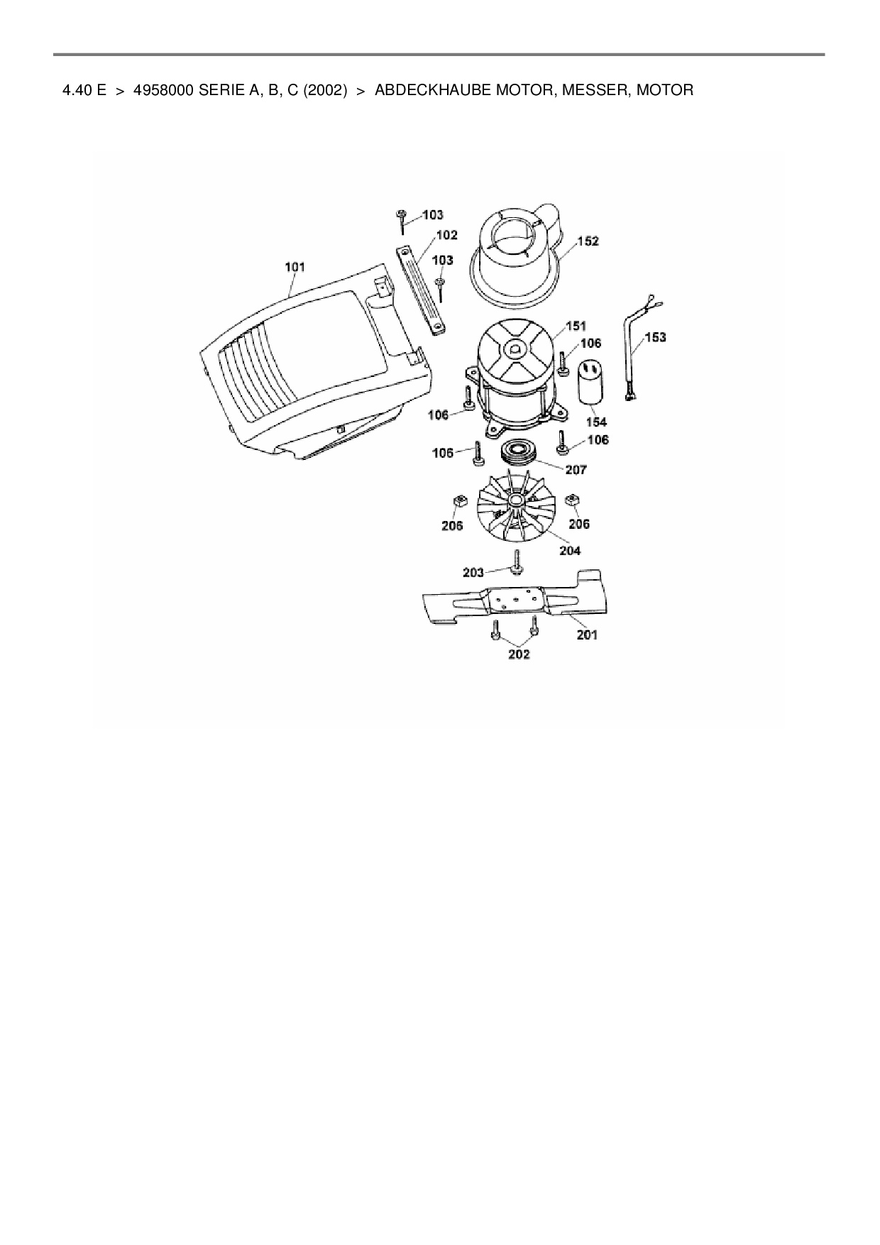Ersatzteile für Elektromäher Wolf-Garten 4.40 E aus der Zeichnung Abdeckhaube Motor, Messer, Motor: