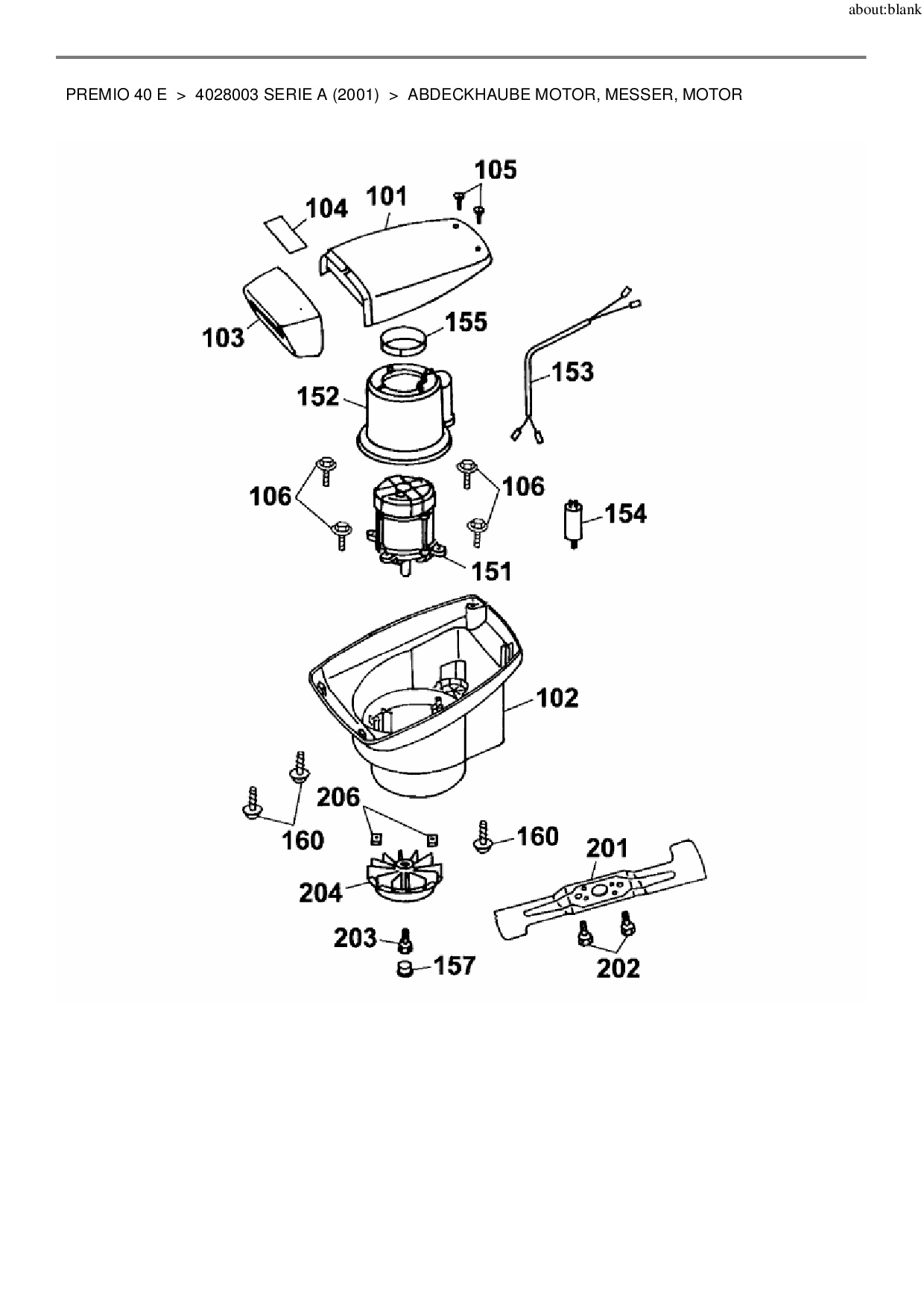 Ersatzteile für Elektromäher Wolf-Garten Premio 40 E aus der Zeichnung Abdeckhaube Motor, Messer, Motor: