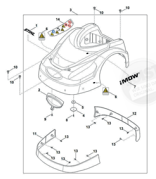 Hier finden Sie alle Ersatzteile von Stihl Mähroboter RMI 422.1 P der Zeichnungsgruppe Abdeckhaube: