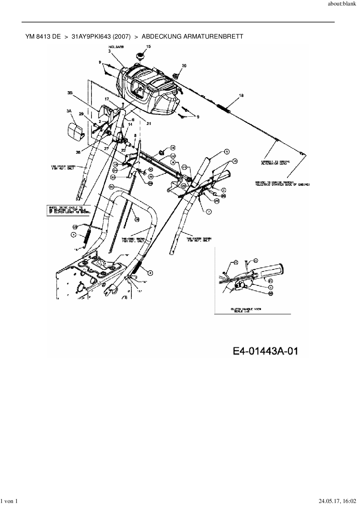 Download Ersatzteil-Zeichnung Yard-Man YM 8413 DE Zeichnung Abdeckung Armaturenbrett (PDF-Format)