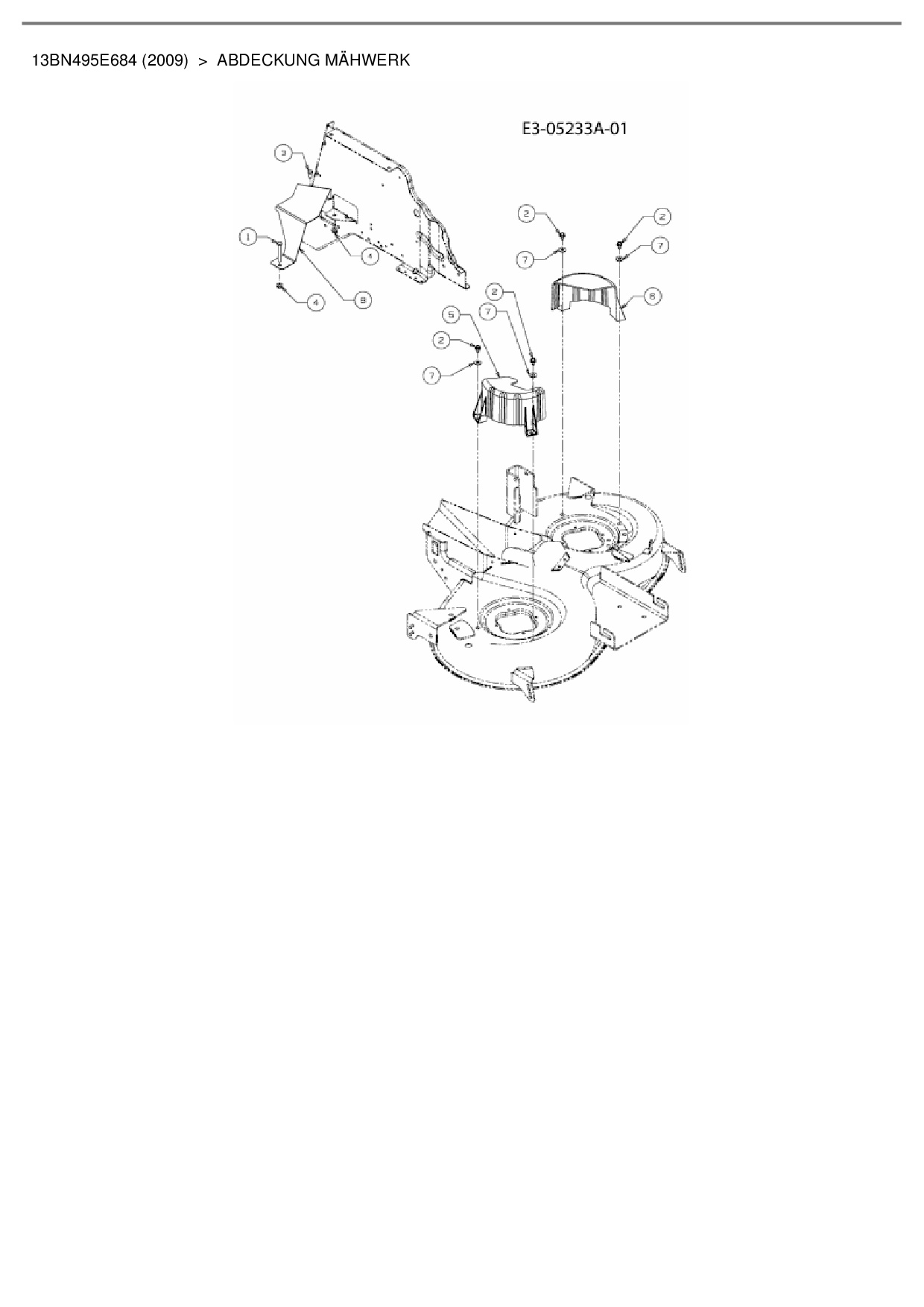 Ersatzteile für Rasentraktor Bolens BL 175/92 H aus der Zeichnung Abdeckung Mähwerk: