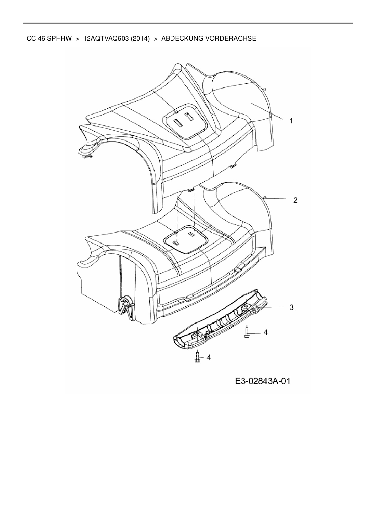 Ersatzteile für Motormäher mit Antrieb Cub Cadet CC 46 SPHHW aus der Zeichnung Abdeckung Vorderachse: