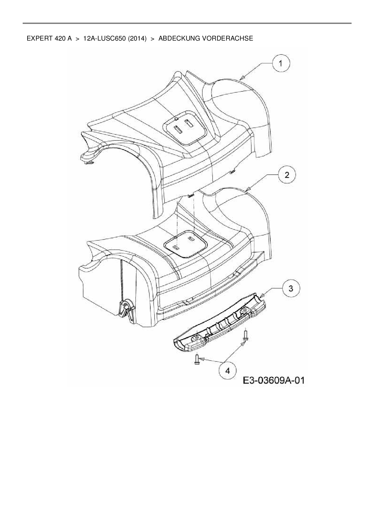Ersatzteile für Motormäher mit Antrieb Wolf-Garten Expert Expert 420 A aus der Zeichnung Abdeckung Vorderachse: