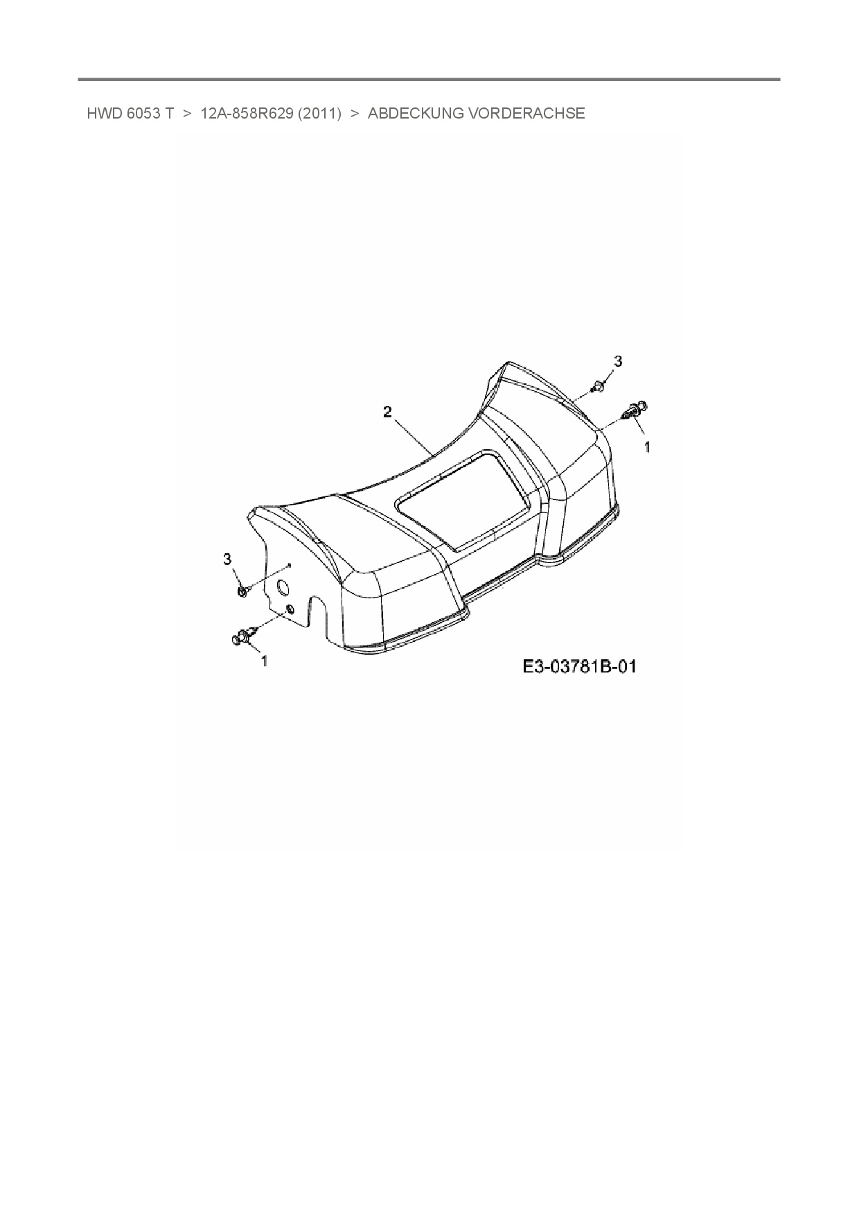 Ersatzteile für Motormäher mit Antrieb Mr. Gardener HWD 6053 T aus der Zeichnung Abdeckung Vorderachse: