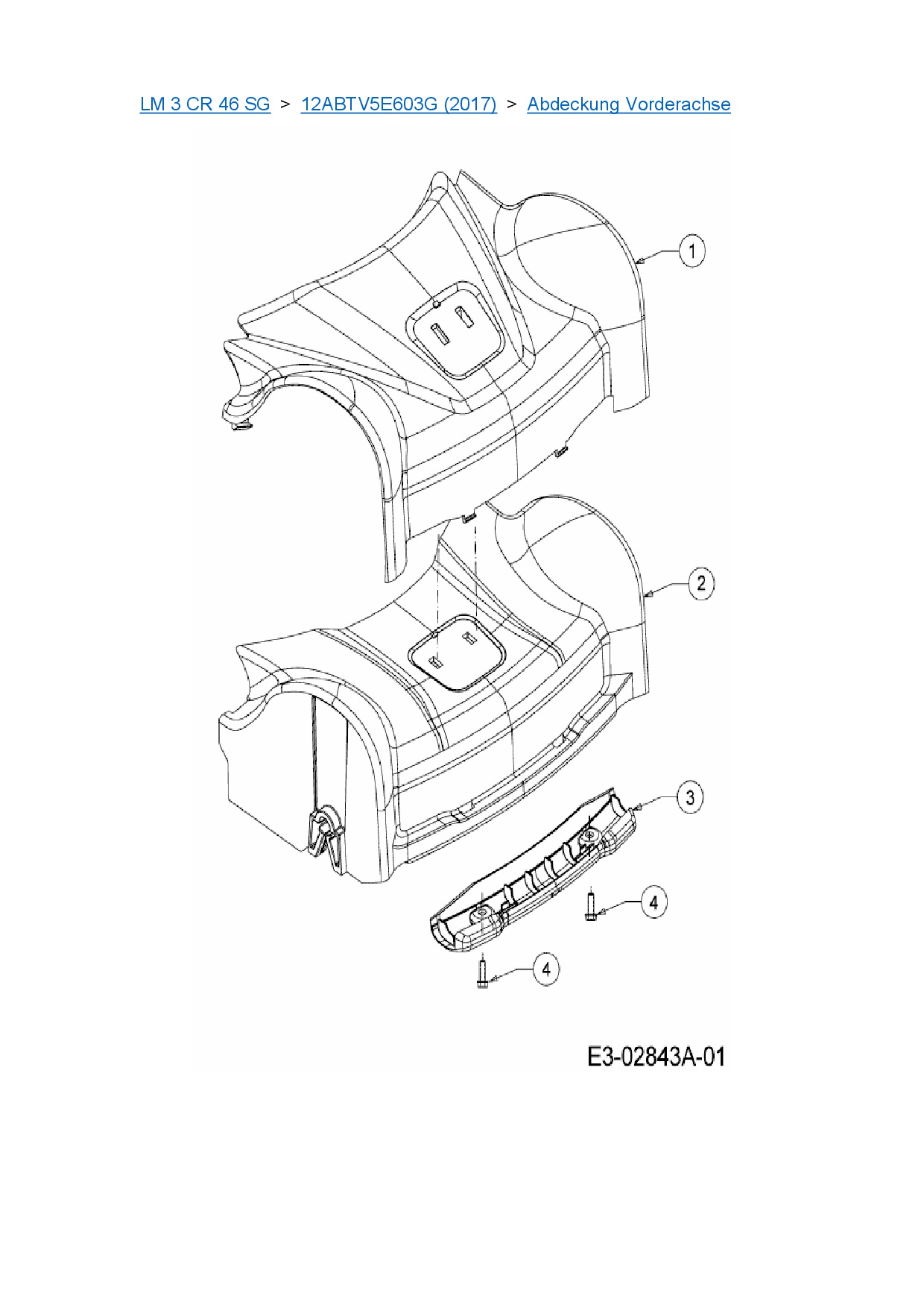 Ersatzteile für Motormäher mit Antrieb Cub Cadet LM 3 CR 46 SG aus der Zeichnung Abdeckung Vorderachse: