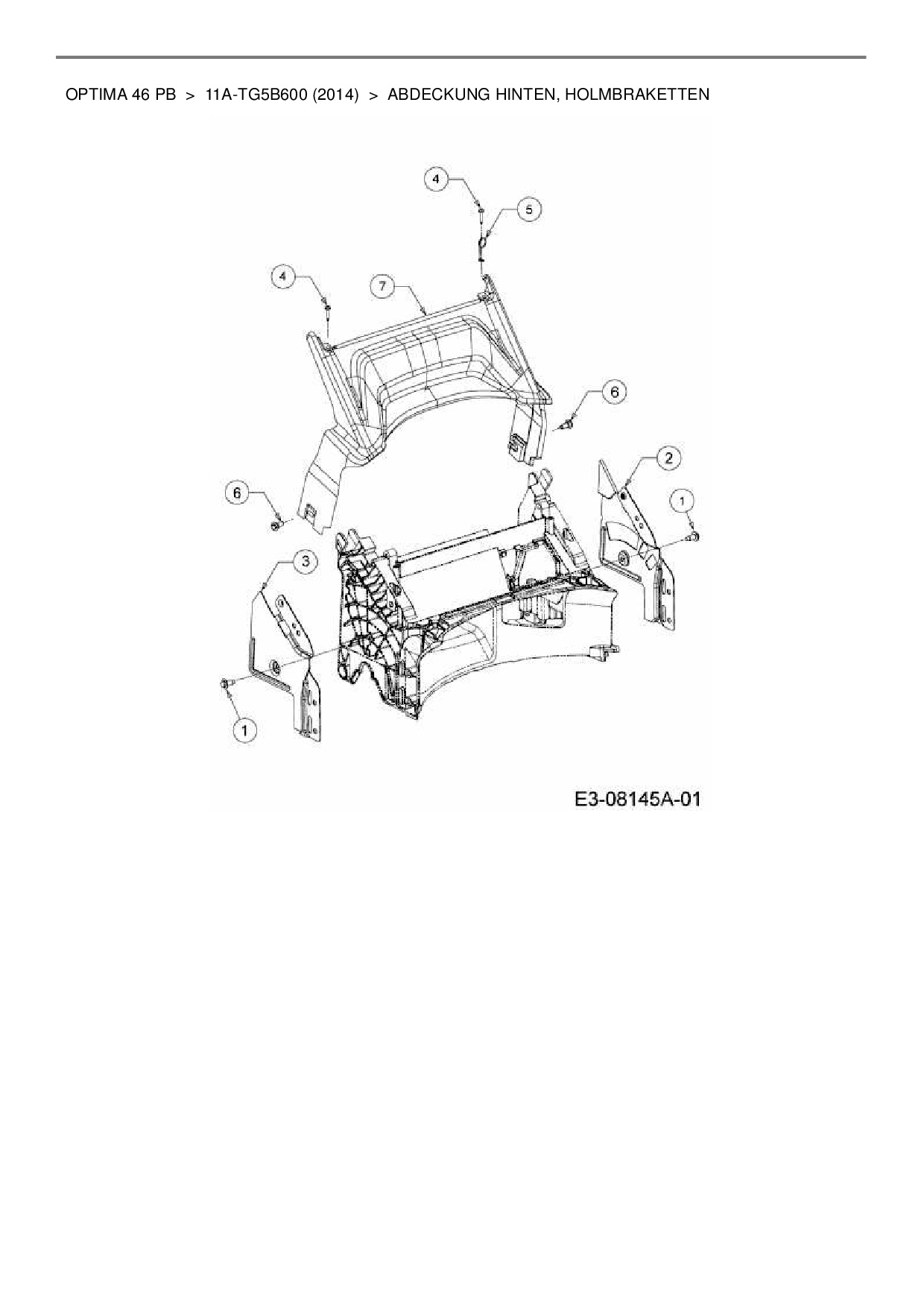 Ersatzteile für Motormäher MTD Optima 46 PB aus der Zeichnung Abdeckung hinten, Holmbraketten: