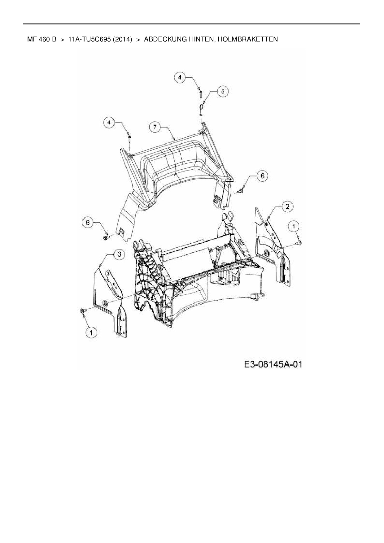 Ersatzteile für Motormäher Massey Ferguson MF 460 B aus der Zeichnung Abdeckung hinten, Holmbraketten: