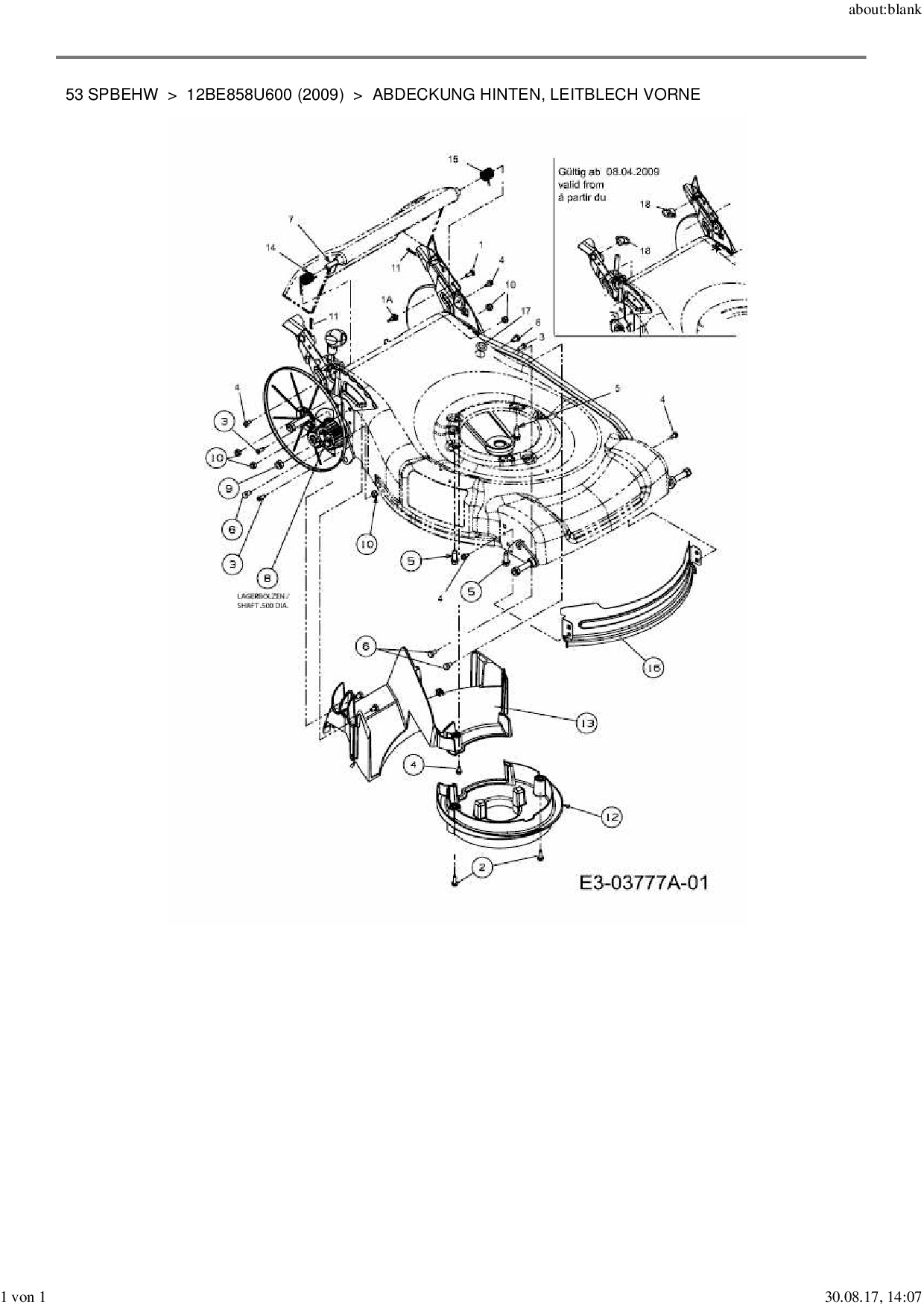 Ersatzteile für Motormäher mit Antrieb MTD 53 SPBEHW aus der Zeichnung Abdeckung hinten, Leitblech vorne: