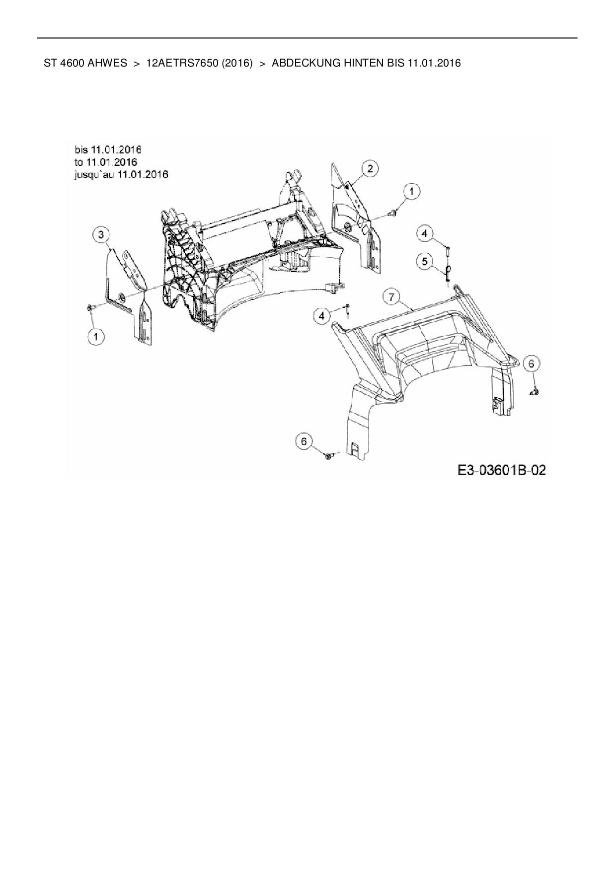 Ersatzteile für Motormäher mit Antrieb Wolf-Garten ST 4600 AHWES aus der Zeichnung Abdeckung hinten bis 11.01.2016: