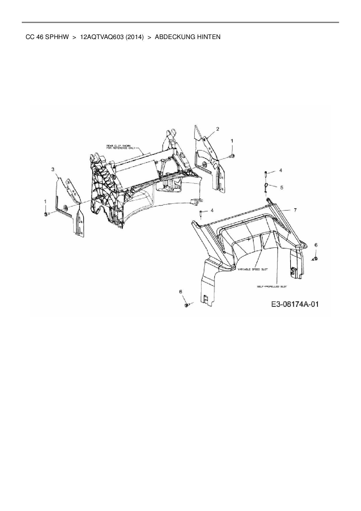 Ersatzteile für Motormäher mit Antrieb Cub Cadet CC 46 SPHHW aus der Zeichnung Abdeckung hinten: