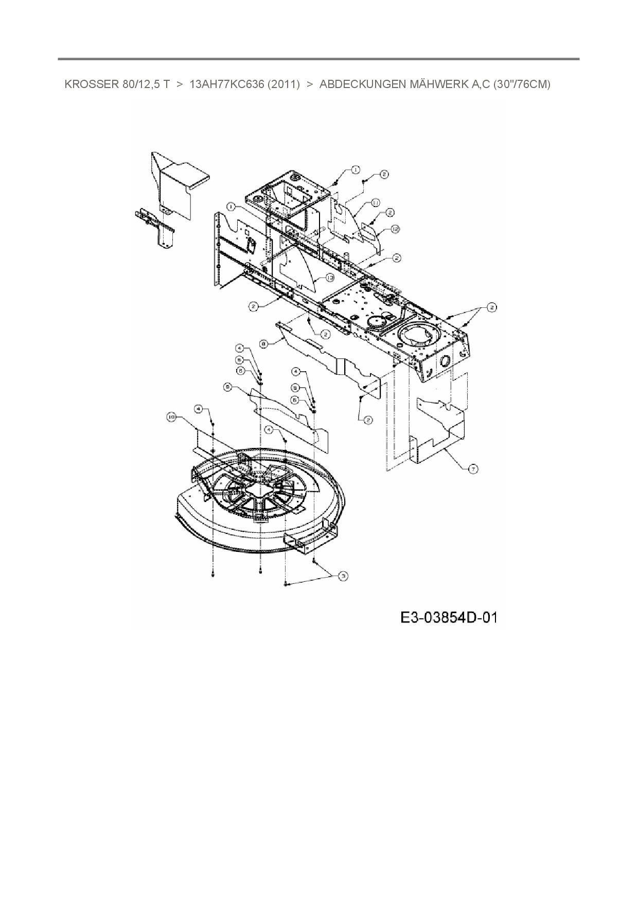Ersatzteile für Rasentraktor Oleo-Mac Krosser 80/12,5 T aus der Zeichnung Abdeckungen Mähwerk A,C (30"/76cm):