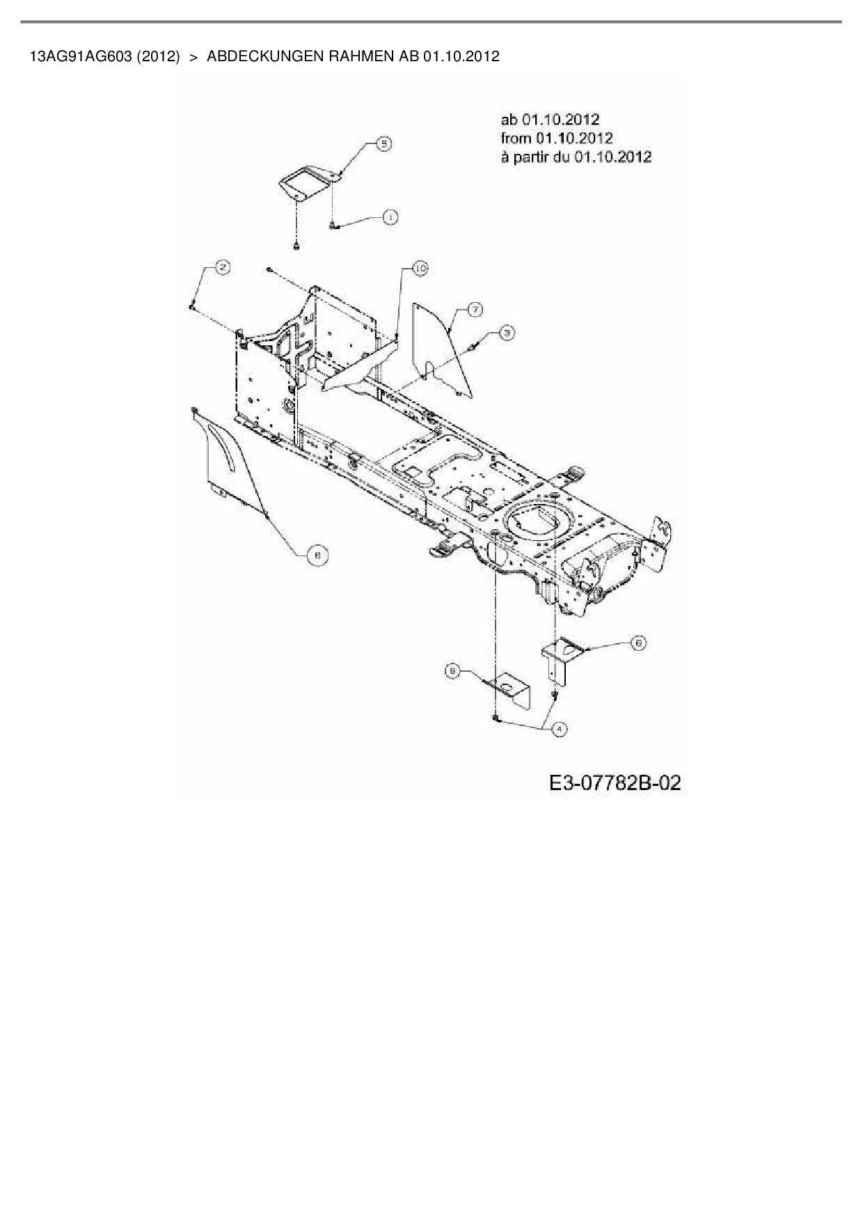 Ersatzteile für Rasentraktor Cub Cadet CC 1016 KHG aus der Zeichnung Abdeckungen Rahmen ab 01.10.2012: