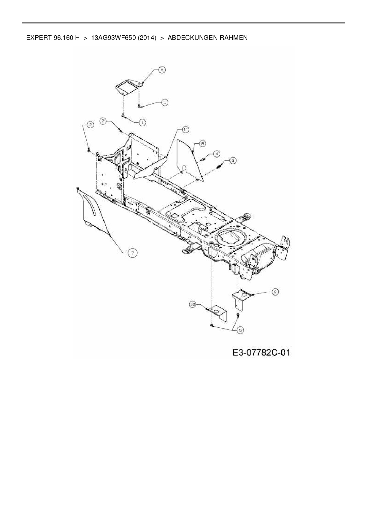 Ersatzteile für Rasentraktor Wolf-Garten Expert Expert 96.160 H aus der Zeichnung Abdeckungen Rahmen: