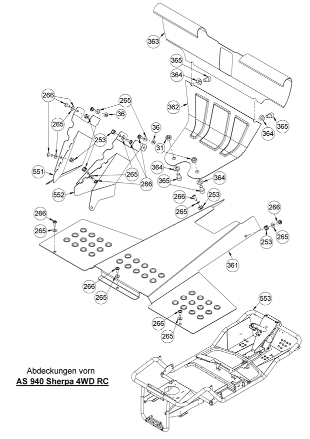 Hier finden Sie alle Ersatzteile von AS-Motor Aufsitzmäher AS 940 Sherpa 4WD RC B&S ab FNr. 027416100001 aus dem Zeichnungsblatt Abdeckungen vorn: