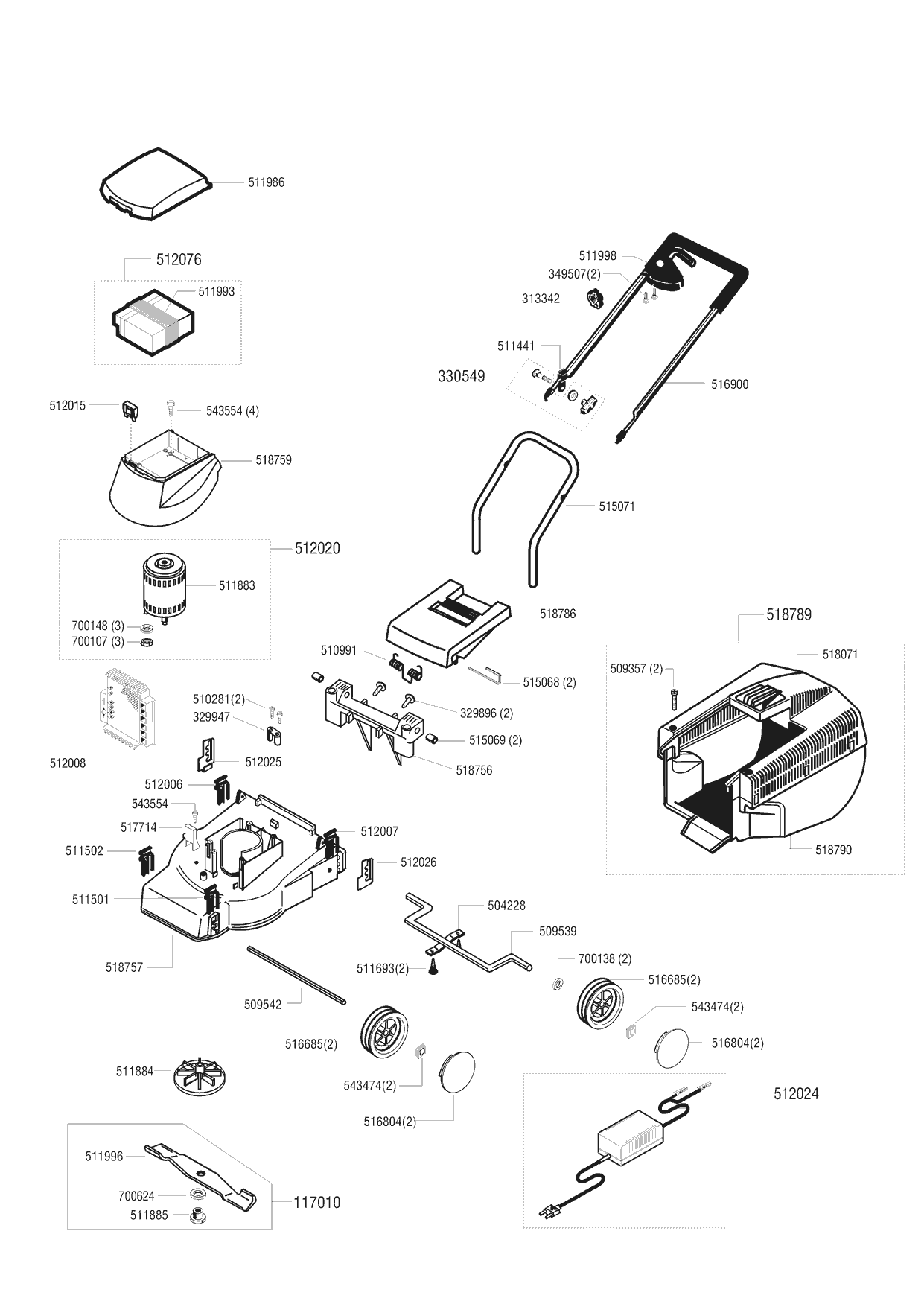 Zeichnungen von Gardol Akkurasenmäher Accu Tec 320 mit der Geräte-Artikelnr. 117182: