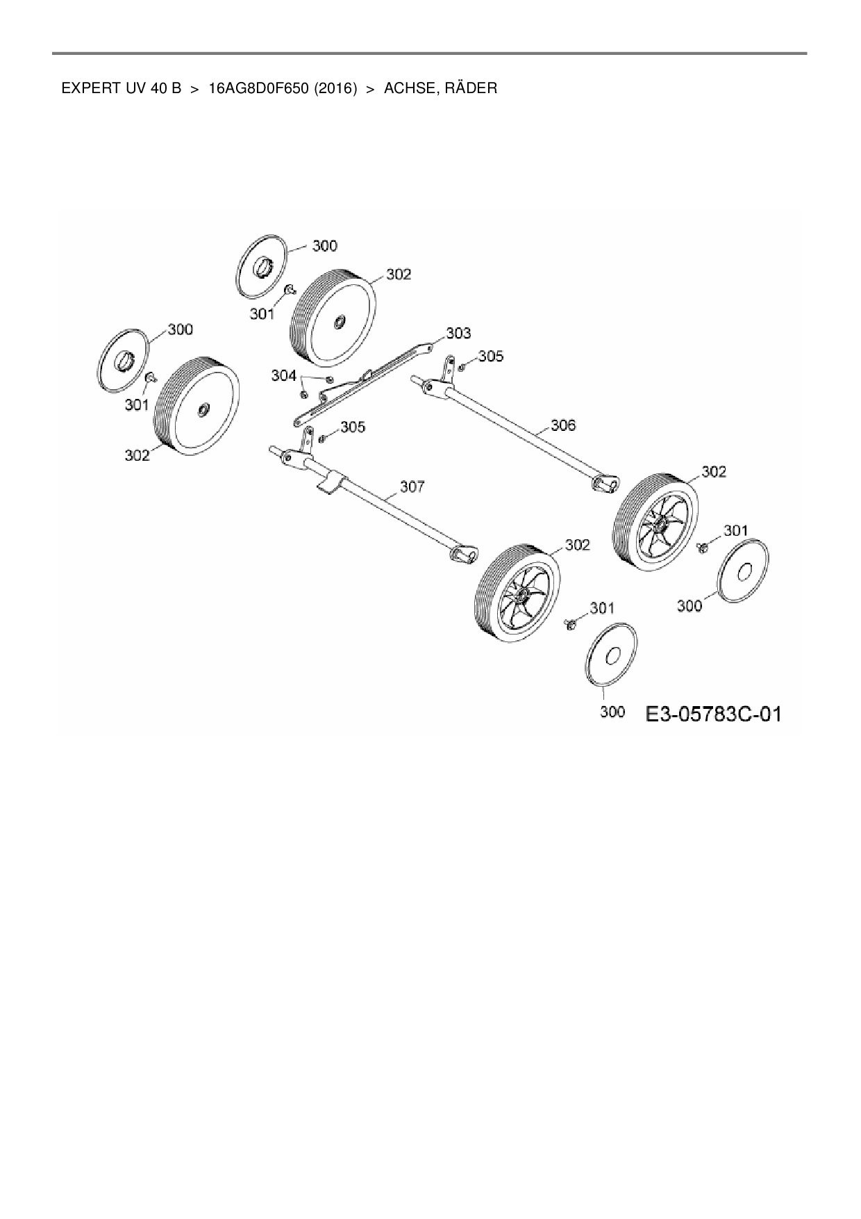 Ersatzteile für Motorvertikutierer Wolf-Garten Expert Expert UV 40 B aus der Zeichnung Achse, Räder: