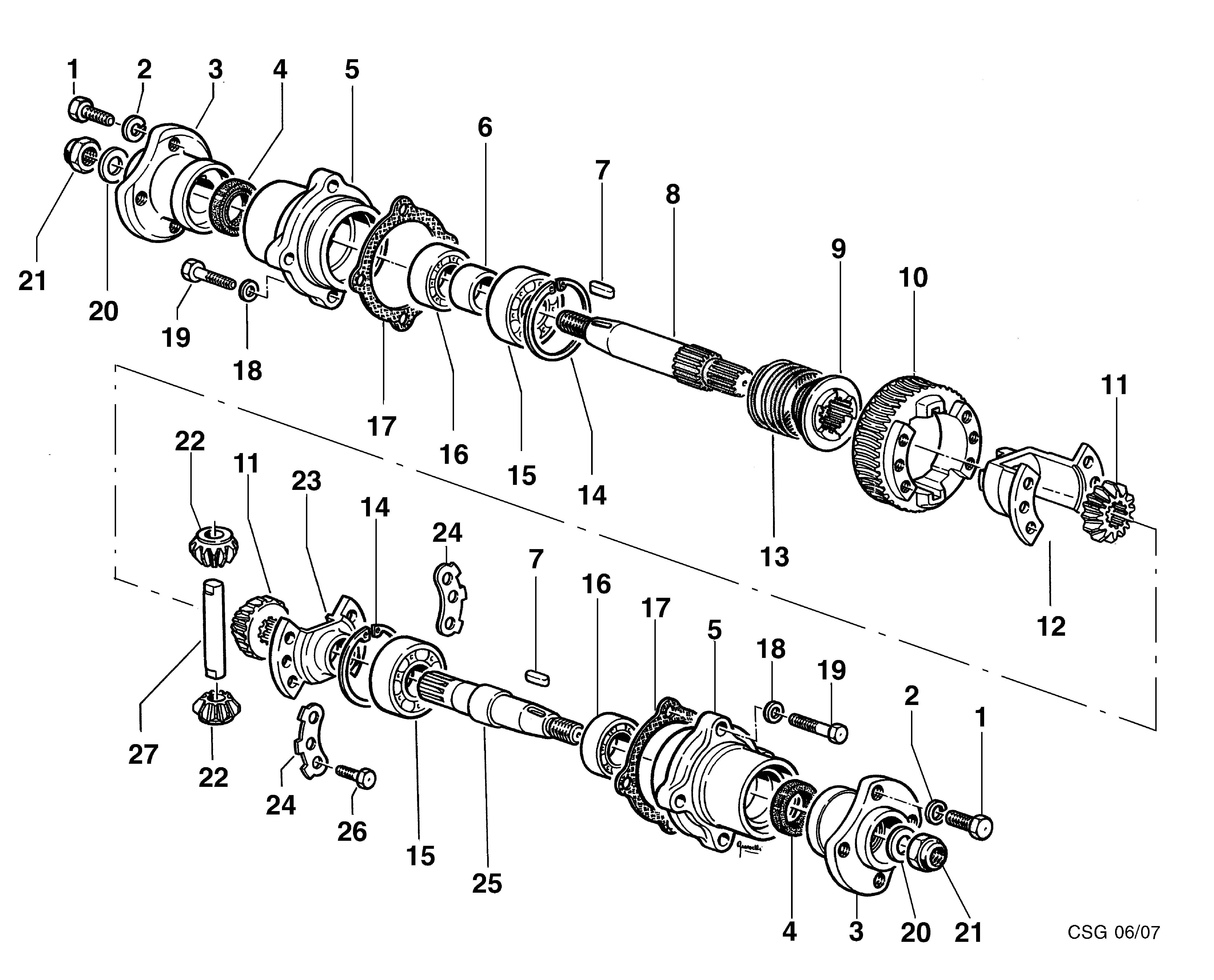 Hier finden Sie alle Ersatzteile für Bertolini Balkenmäher B 103 aus der Zeichnung für Achse mit Differential: