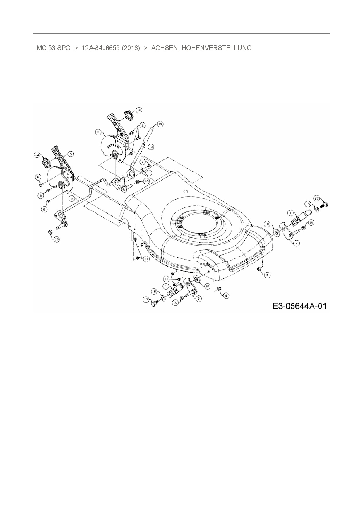 Ersatzteile für Motormäher mit Antrieb Mastercut MC 53 SPO aus der Zeichnung Achsen, Höhenverstellung:
