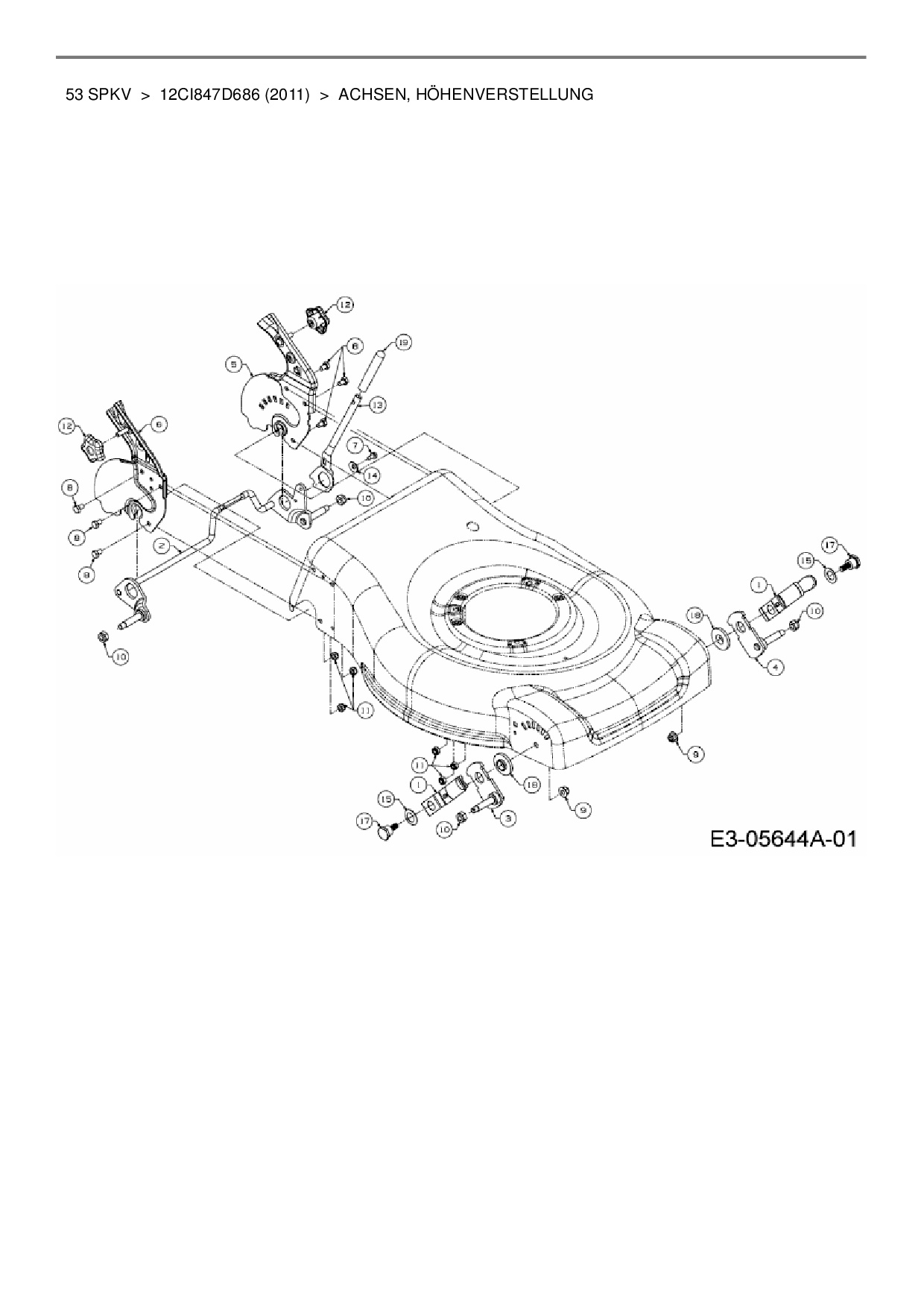 Ersatzteile für Motormäher mit Antrieb MTD 53 SPKV aus der Zeichnung Achsen, Höhenverstellung: