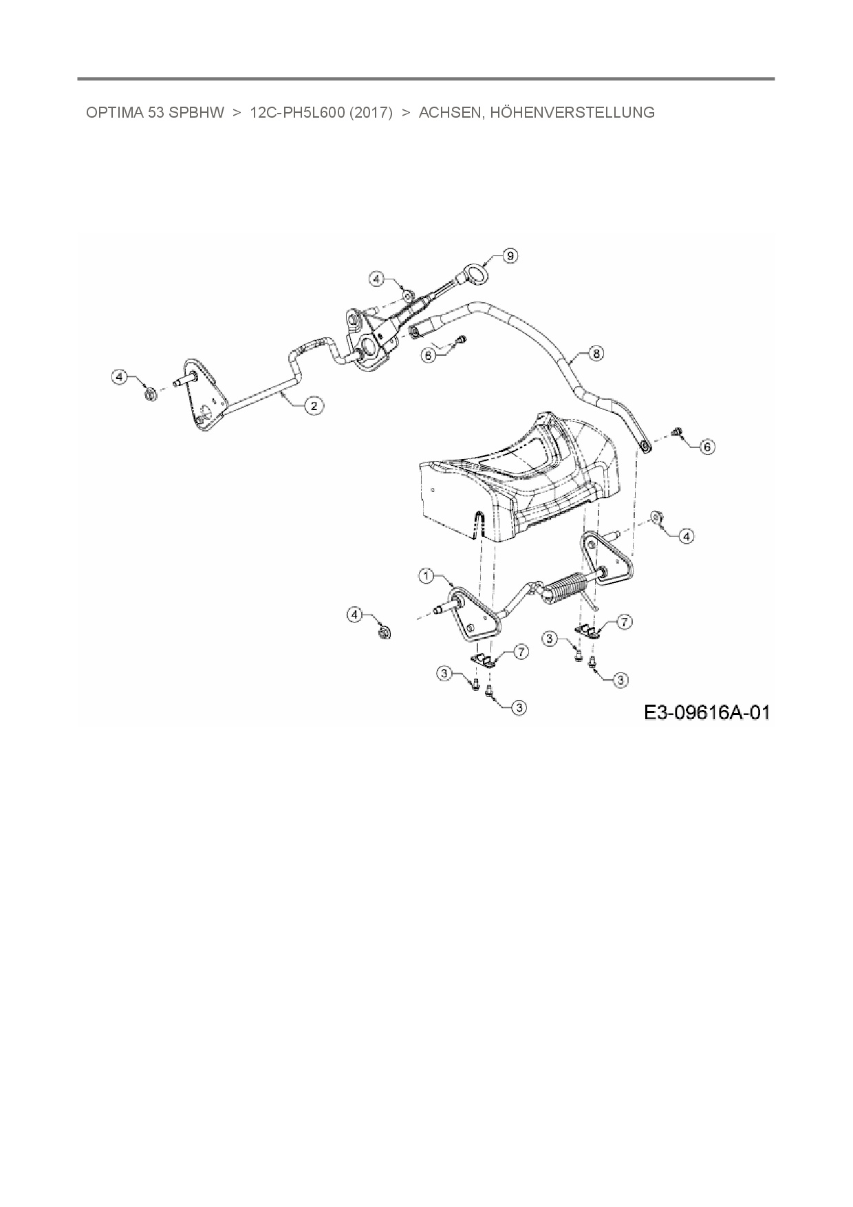 Ersatzteile für Motormäher mit Antrieb MTD Optima 53 SPBHW aus der Zeichnung Achsen, Höhenverstellung:
