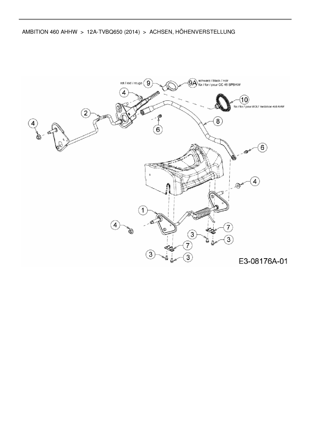 Ersatzteile für Motormäher mit Antrieb Wolf-Garten Ambition 460 AHHW aus der Zeichnung Achsen, Höhenverstellung:
