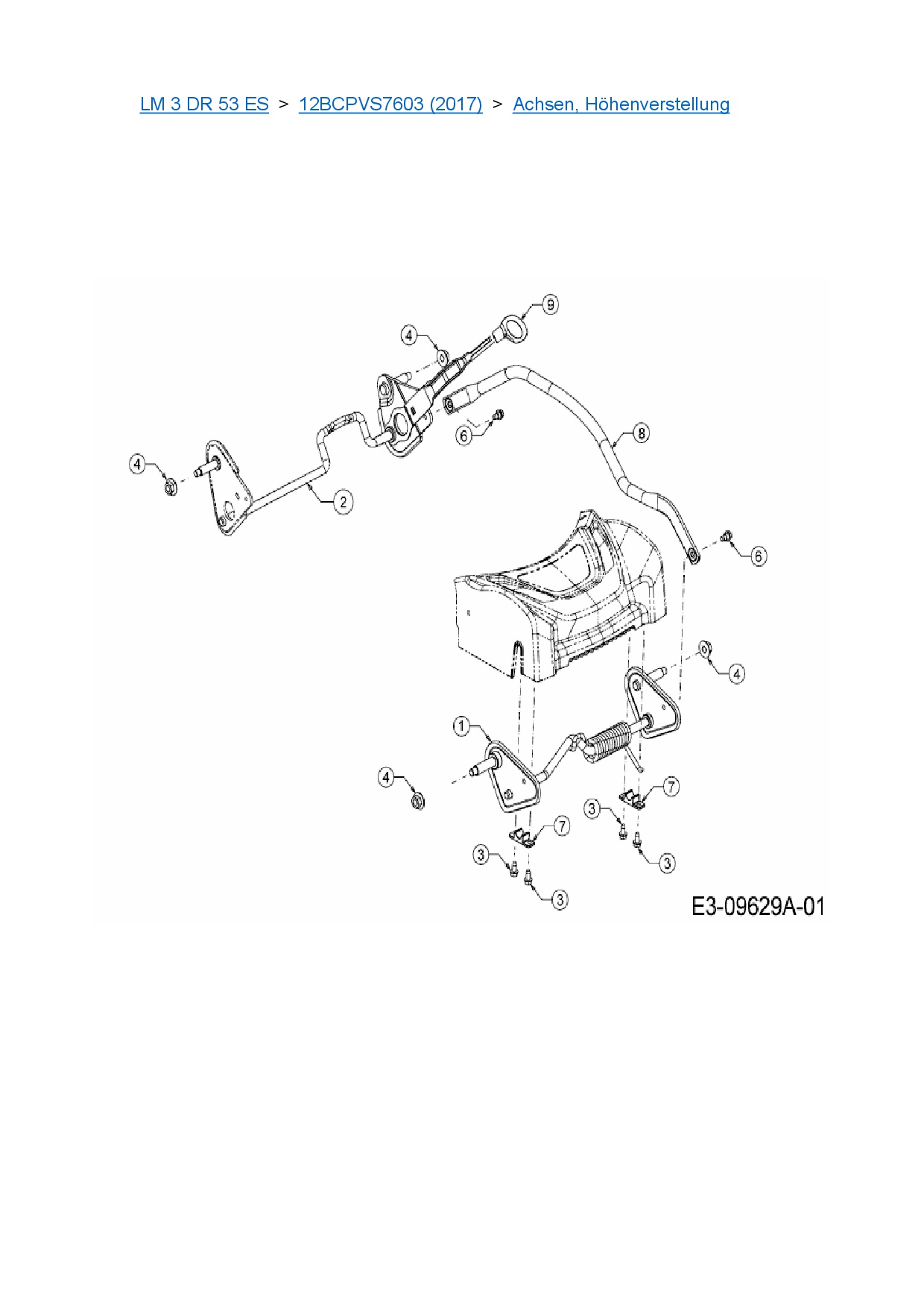 Ersatzteile für Motormäher mit Antrieb Cub Cadet LM 3 DR 53 ES aus der Zeichnung Achsen, Höhenverstellung: