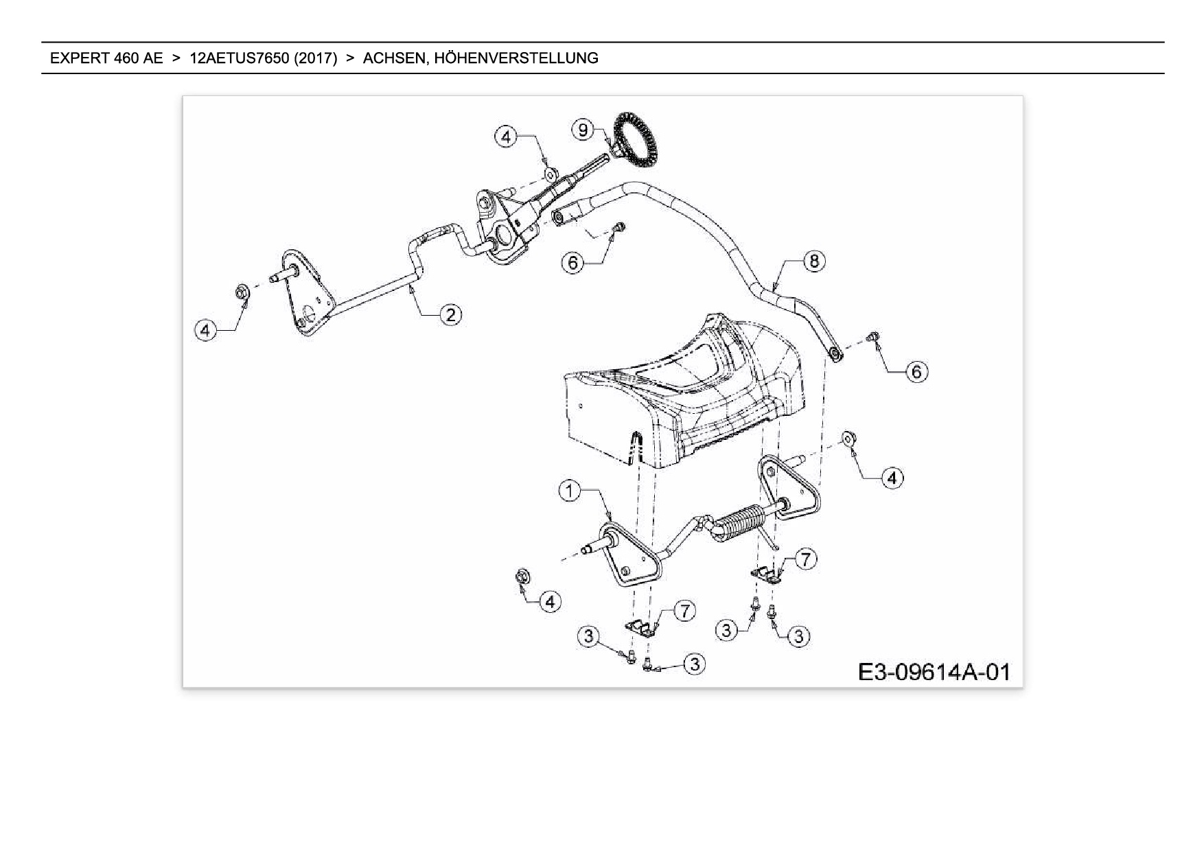 Ersatzteile für Motormäher mit Antrieb Wolf-Garten Expert EXPERT 460 AE aus der Zeichnung Achsen, Höhenverstellung: