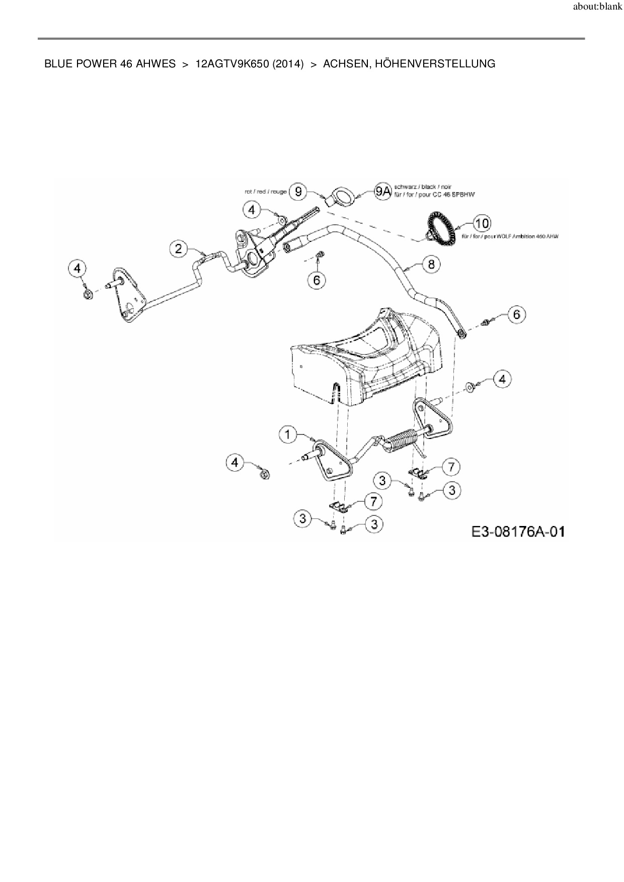 Ersatzteile für Motormäher mit Antrieb Wolf-Garten Blue Power 46 AHWES aus der Zeichnung Achsen, Höhenverstellung: