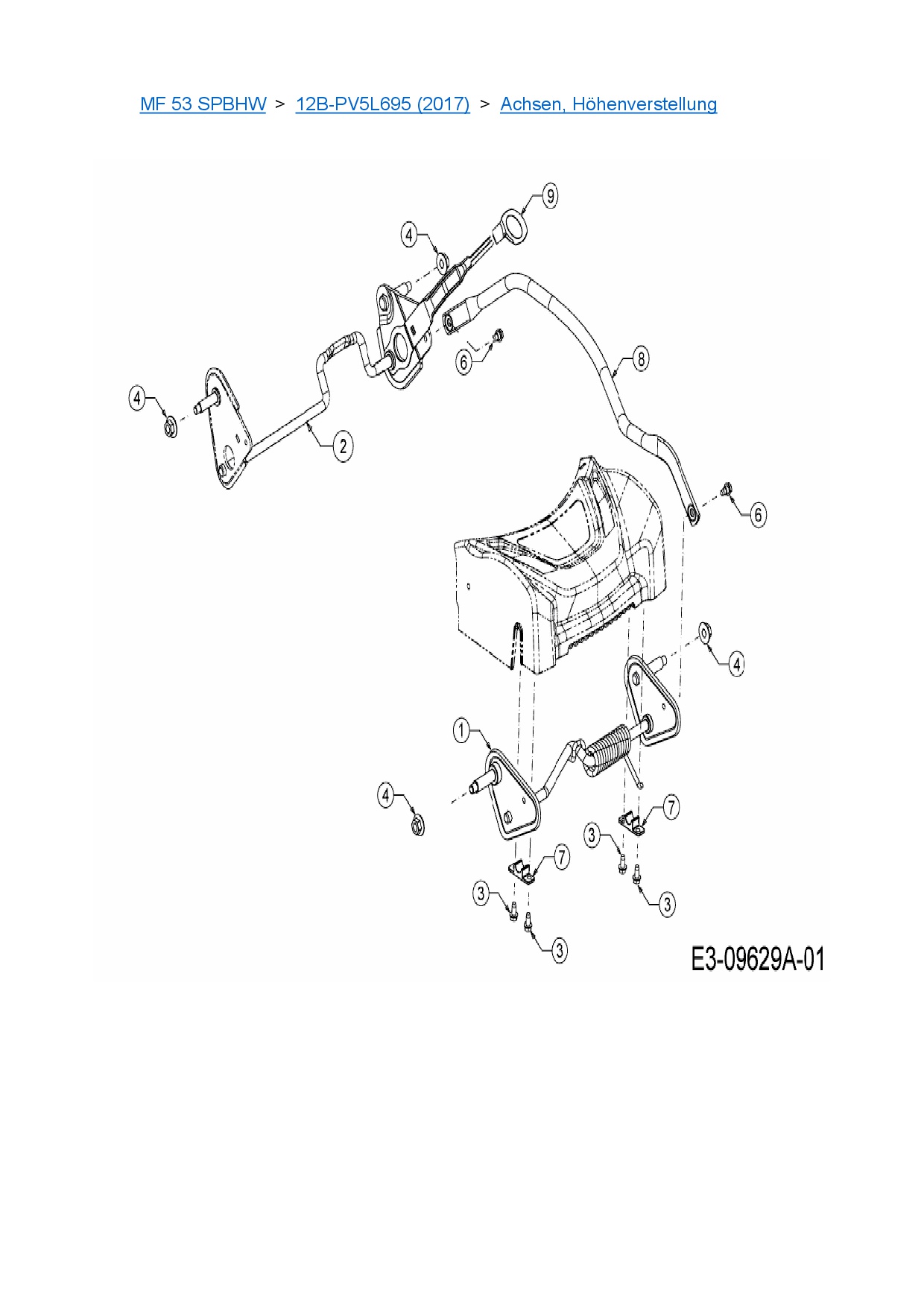 Ersatzteile für Motormäher mit Antrieb Massey Ferguson MF 53 SPBHW aus der Zeichnung Achsen, Höhenverstellung: