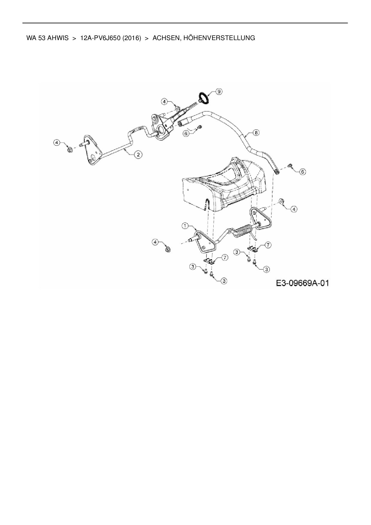 Ersatzteile für Motormäher mit Antrieb Wolf-Garten WA 53 AHWIS aus der Zeichnung Achsen, Höhenverstellung: