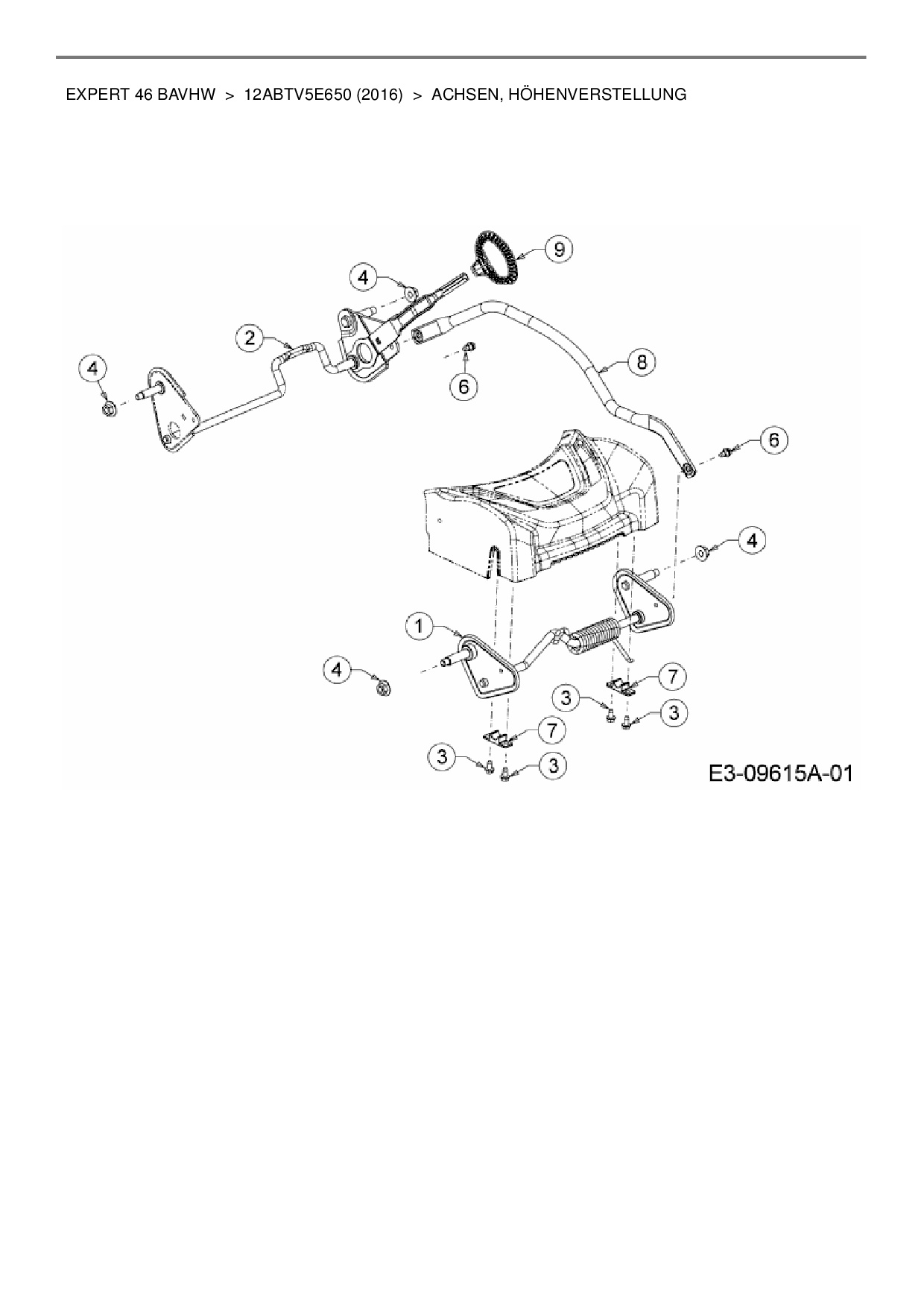 Ersatzteile für Motormäher mit Antrieb Wolf-Garten Expert Expert 46 BAVHW aus der Zeichnung Achsen, Höhenverstellung: