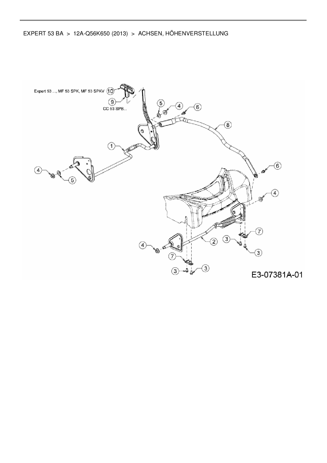 Ersatzteile für Motormäher mit Antrieb Wolf-Garten Expert Expert 53 BA aus der Zeichnung Achsen, Höhenverstellung: