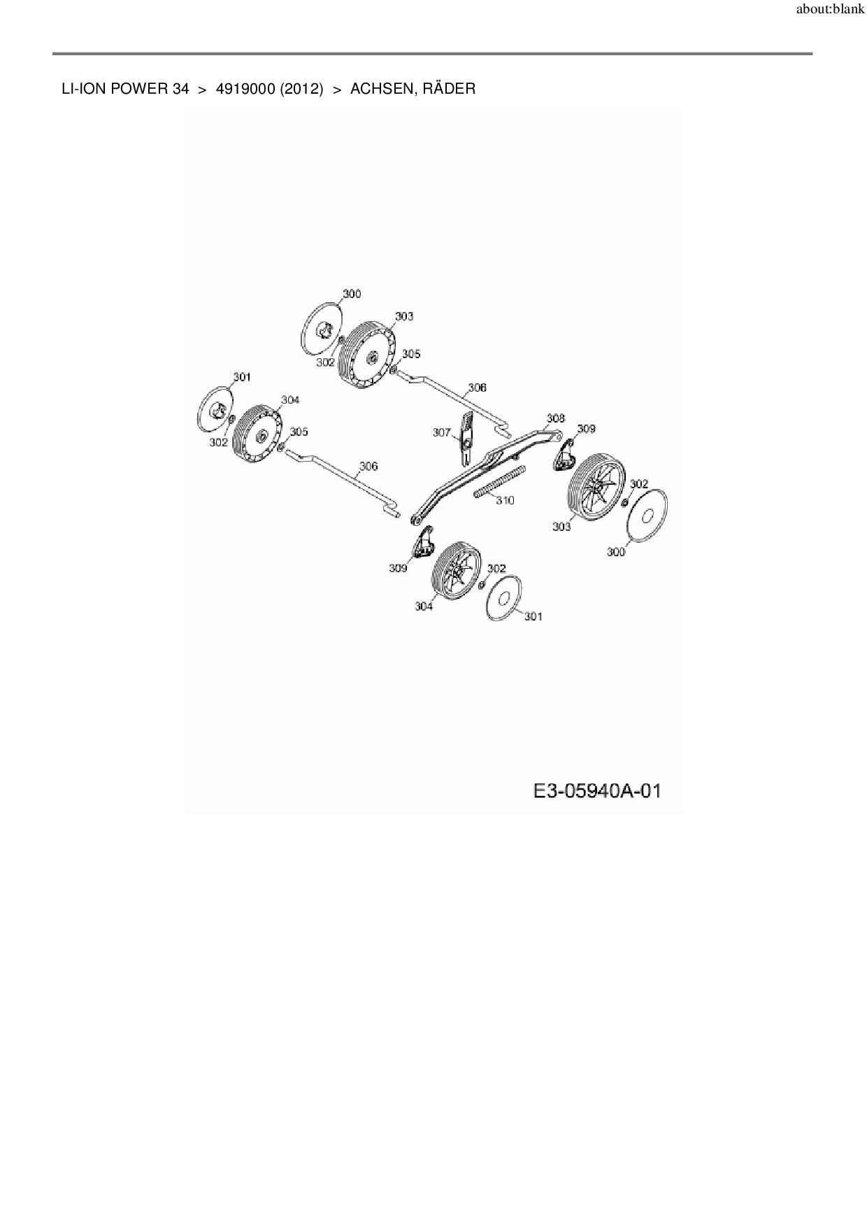 Ersatzteile für Akkumäher Wolf-Garten Li-Ion Power 34 aus der Zeichnung Achsen, Räder: