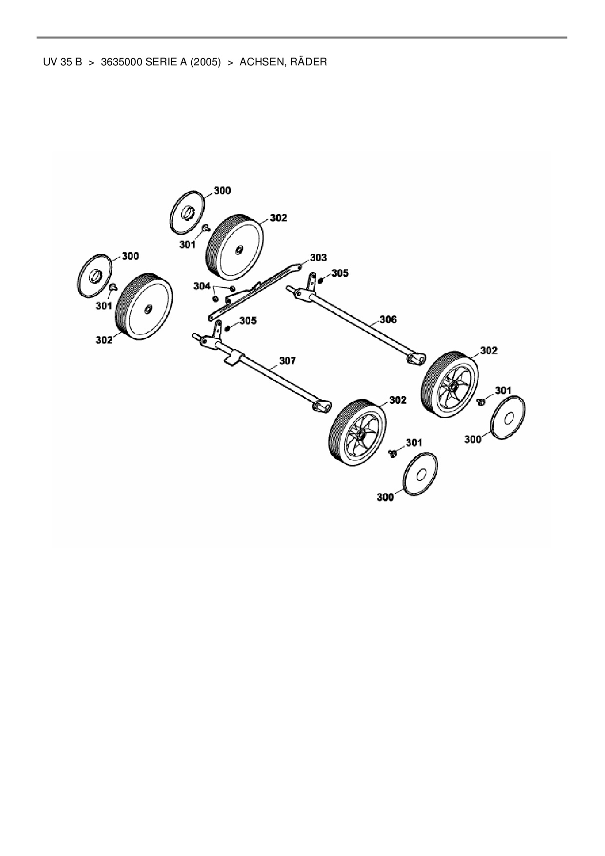 Download Ersatzteil-Zeichnung Wolf-Garten UV 35 B Zeichnung Achsen, Räder (PDF-Format)