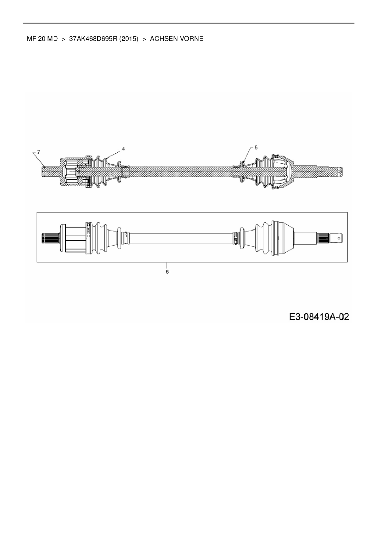 Download Ersatzteil-Zeichnung Massey Ferguson MF 20 MD Zeichnung Achsen vorne (PDF-Format)