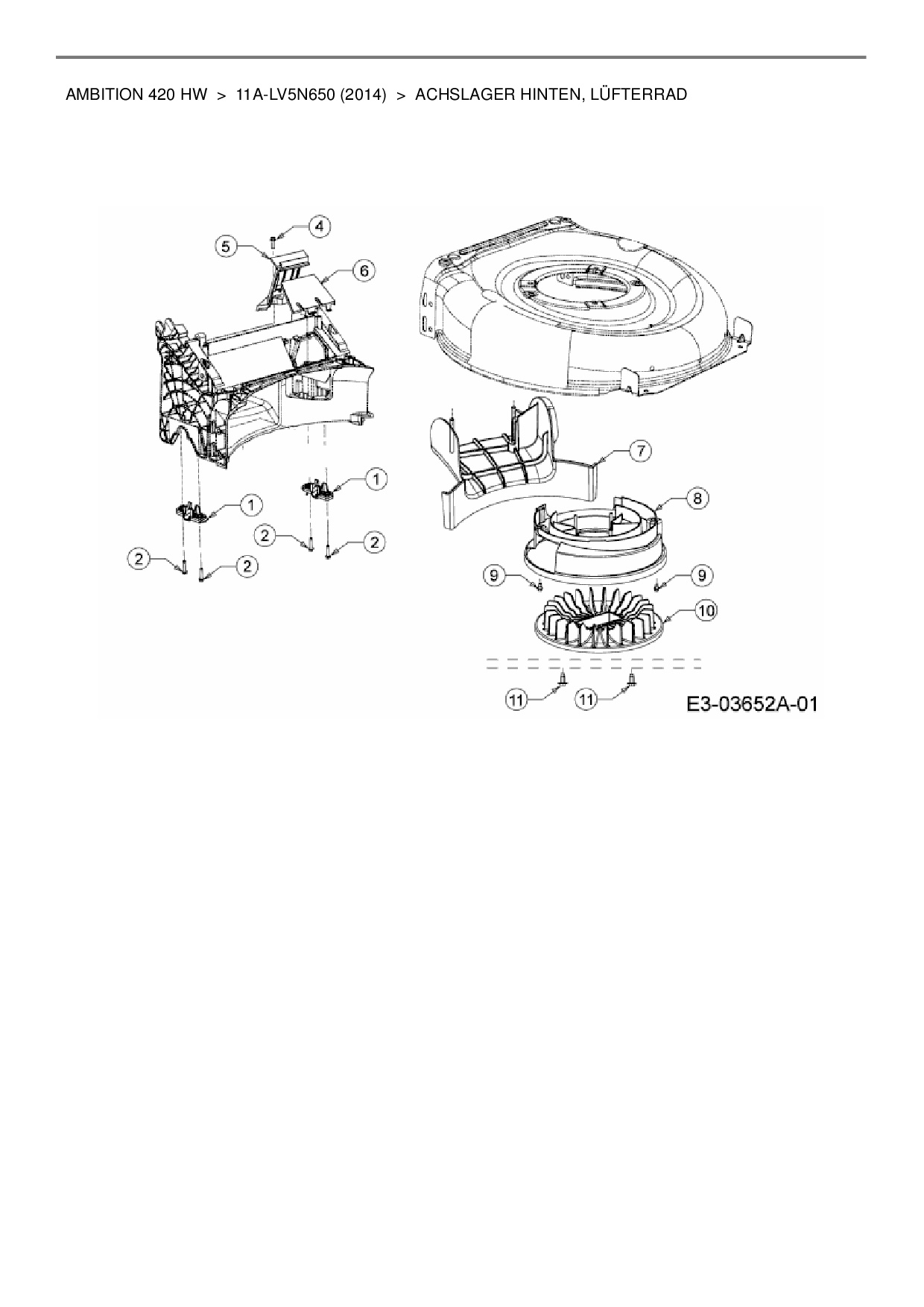 Ersatzteile für Motormäher Wolf-Garten Ambition 420 HW aus der Zeichnung Achslager hinten, Lüfterrad: