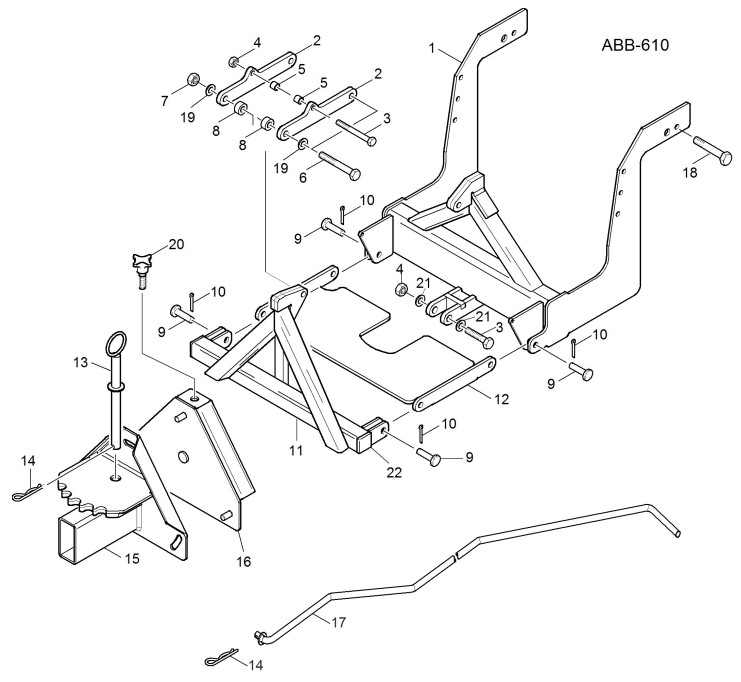 Zeichnung von ECHO-Motorgeräte Rasentraktoren PARK-Serie FKM-600 für PARK-250KAWA Anbaubock FKM-ABB-610: