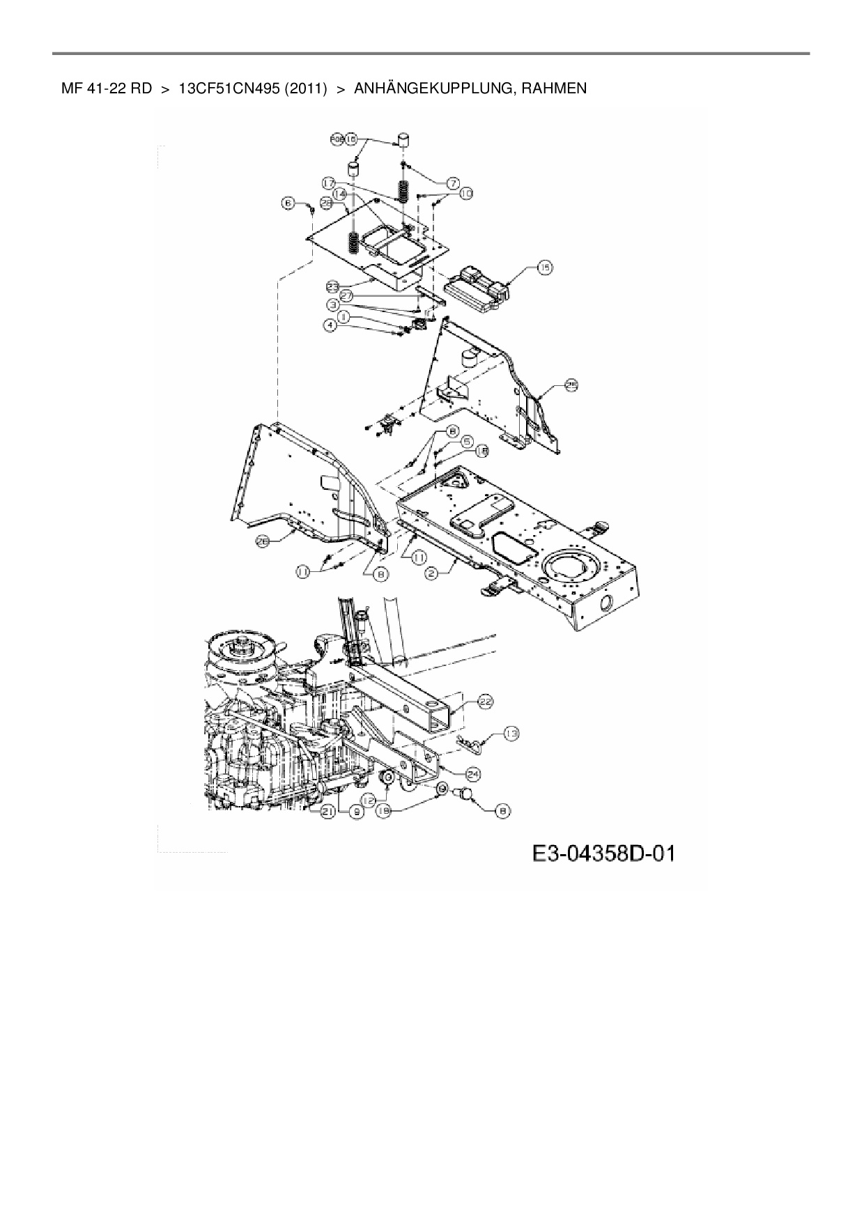 Ersatzteile für Rasentraktor Massey Ferguson MF 41-22 RD aus der Zeichnung Anhängekupplung, Rahmen: